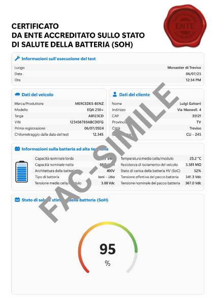 Certificazione dello stato di salute della batteria