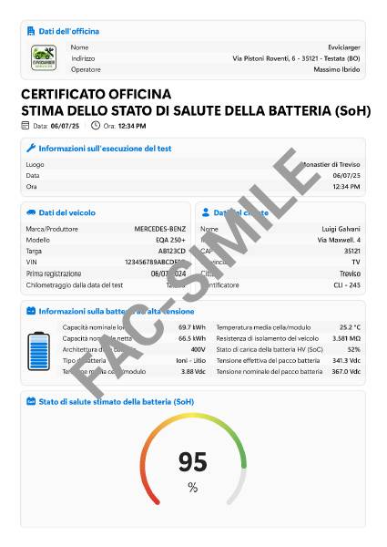 - Verifica e certificazione Stato di salute della batteria di trazione
